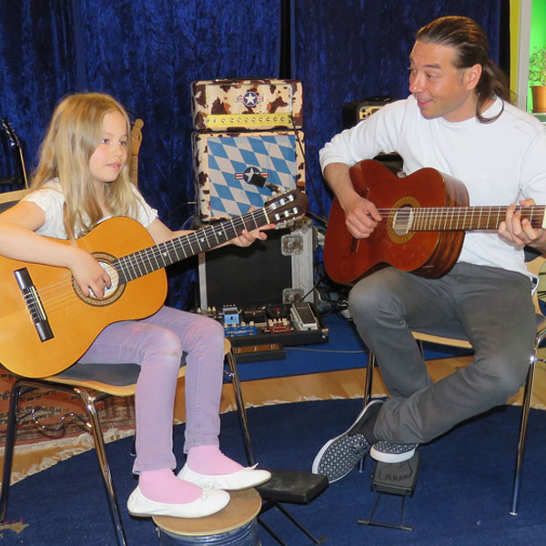 Bei mir kann man die Instrumente "Elektrische Gitarre", "Klassische Gitarre", "Western Gitarre" und "E-Bass" von Anfang an erlernen.